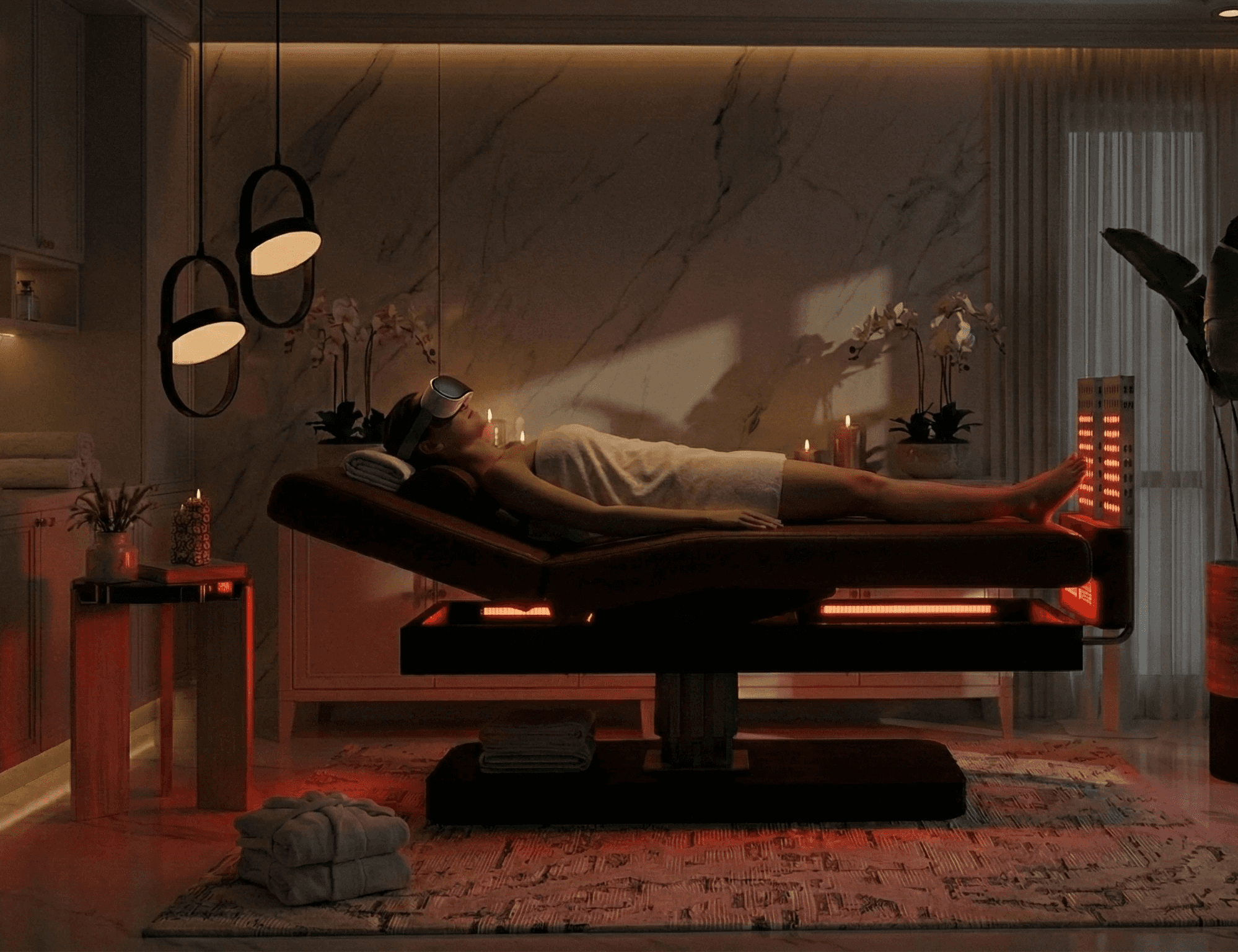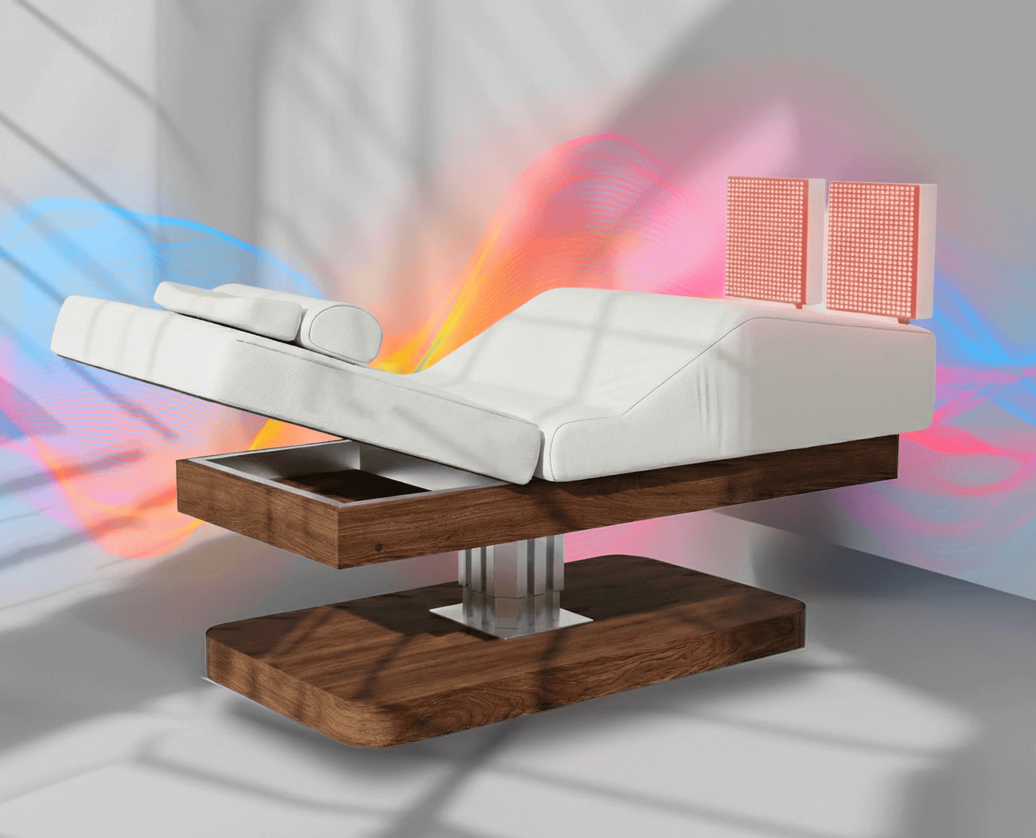 Experience the convergence of five distinct therapies in one zero-gravity platform. Combining 8 Hz vibroacoustics, 830nm red light, and hydrogen inhalation, Somabed™ is engineered to harmonize brainwaves and energize the entire body.